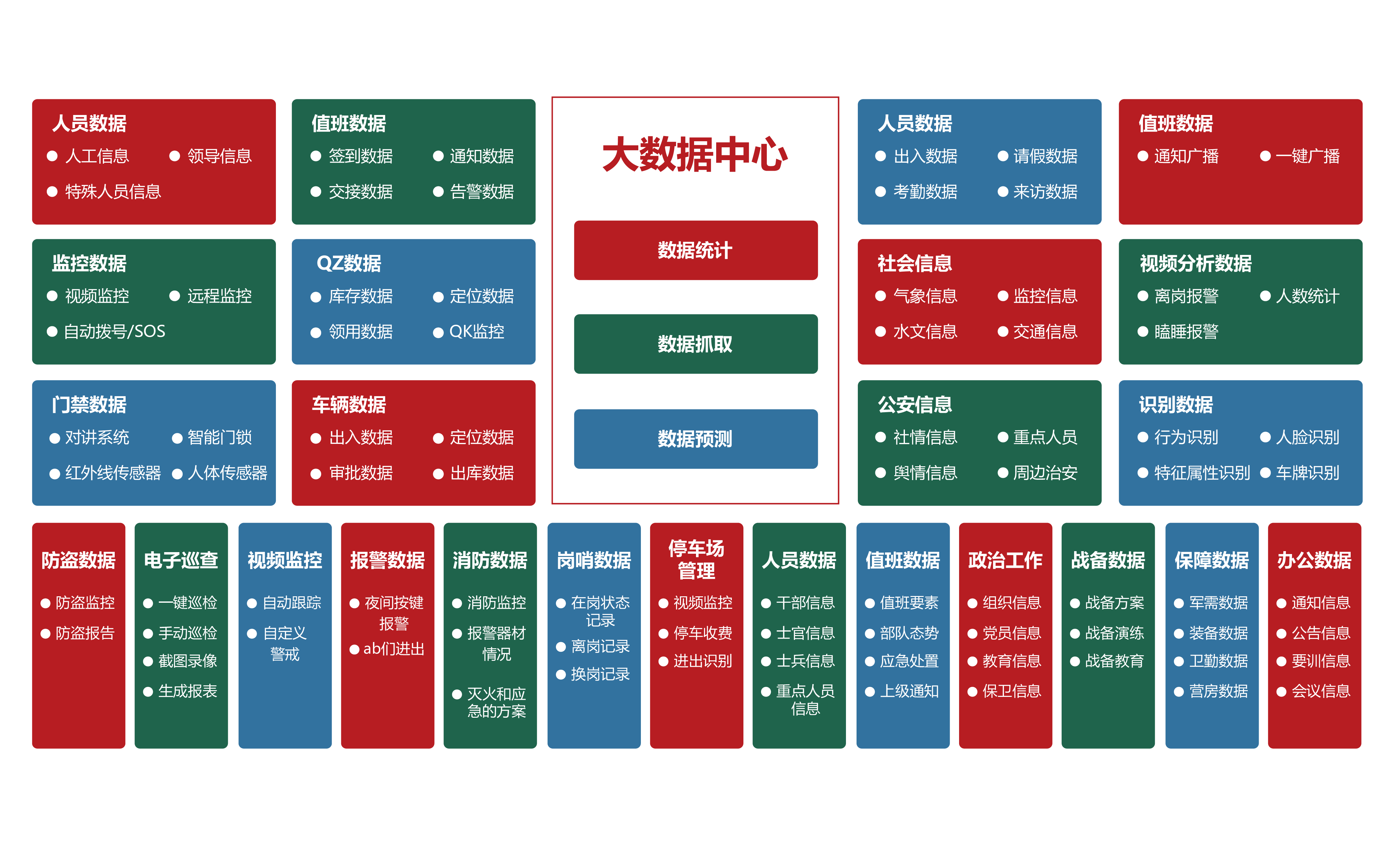 部隊(duì)管理系統(tǒng)基于對(duì)營區(qū)內(nèi)人、車、dy、崗哨等建設(shè)要求,結(jié)合軍隊(duì)自身特點(diǎn)及應(yīng)用現(xiàn)狀,實(shí)現(xiàn)網(wǎng)絡(luò)化管理,提高人、車等管理的效率。可以提高響應(yīng)能力,構(gòu)建人、車、q、d、密的全方位綜合管理的部隊(duì)系統(tǒng),保障整體系統(tǒng)高效、穩(wěn)定、安全運(yùn)行,提升部隊(duì)全面信息化建設(shè)層次